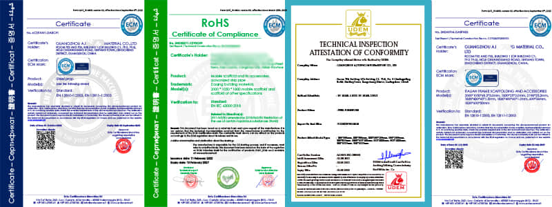 2. Standards Compliance: Our products are designed and manufactured in accordance with mainstream international standards, such as EN 12810 in Europe and AS/NZS 1576 in Australia. 3. Third-Party Verification: We fully accept and welcome you to entrust internationally renowned third-party inspection organizations such as SGS and BV* to conduct Pre-Shipment Inspection (PSI).