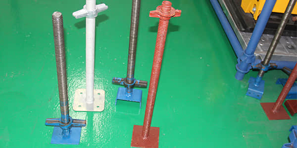 - Making adjustments: The threaded rod and the adjustable jack nut allow for accurate adjustments in height to mitigate differences in the level of the ground, ensuring the vertical members (posts) of the scaffold system start perfectly plumb and level.