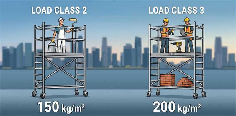 Pro Tip: Always refer to the manufacturer’s identification plate. A legitimate tower scaffold built to the EN 1004 standards will contain the class rating, maximum platform height, and maximum total weight that can be on the tower.